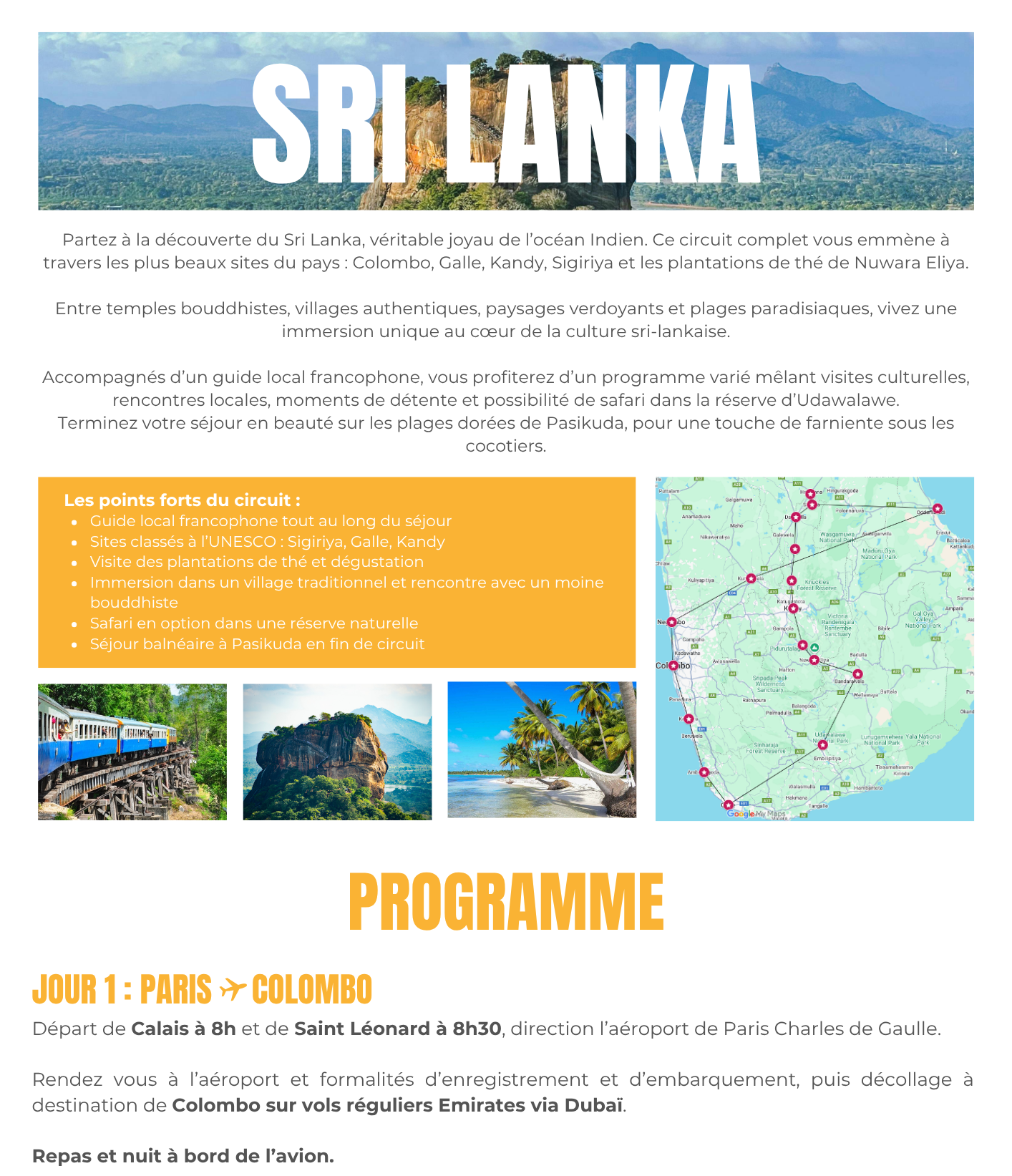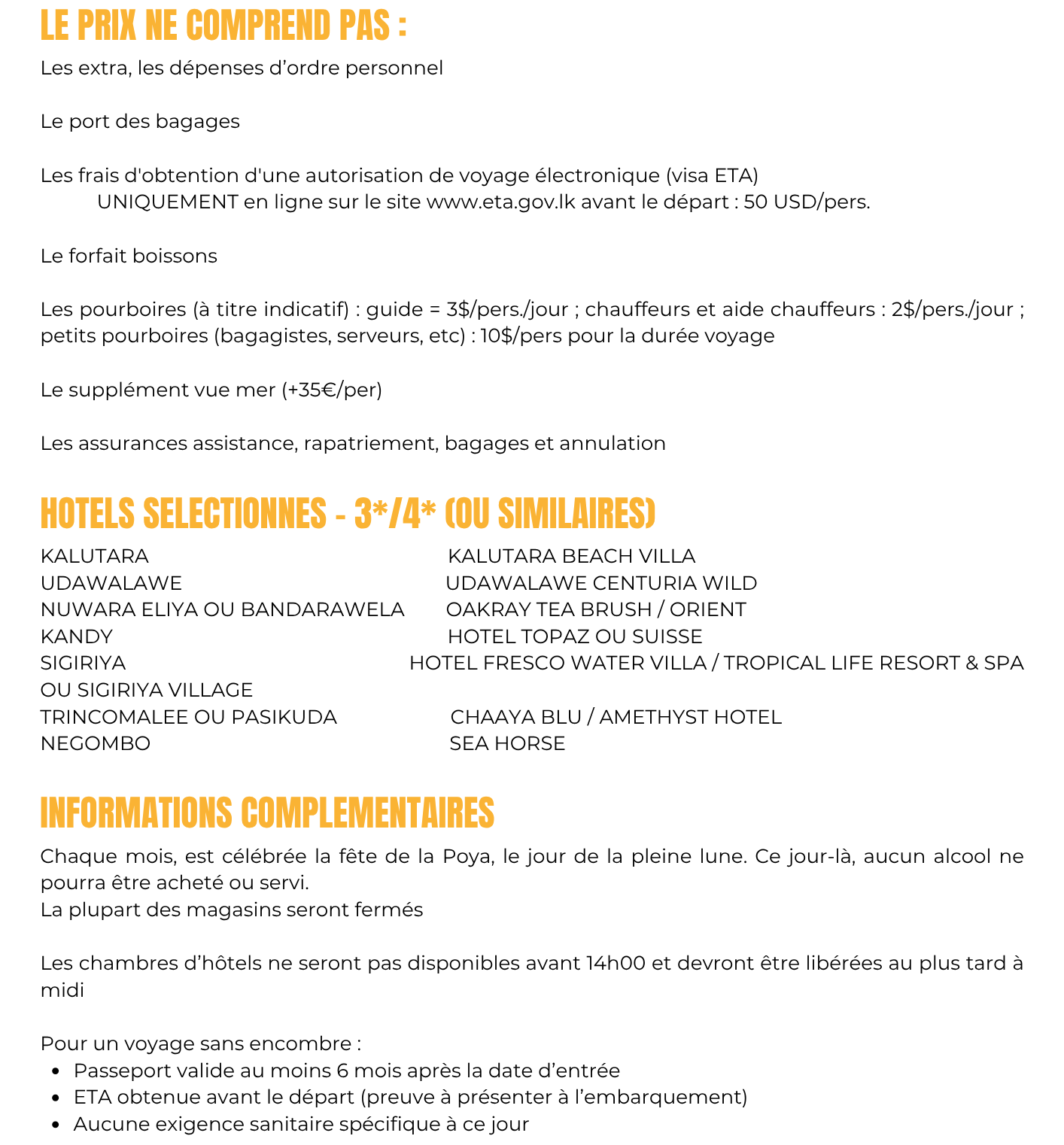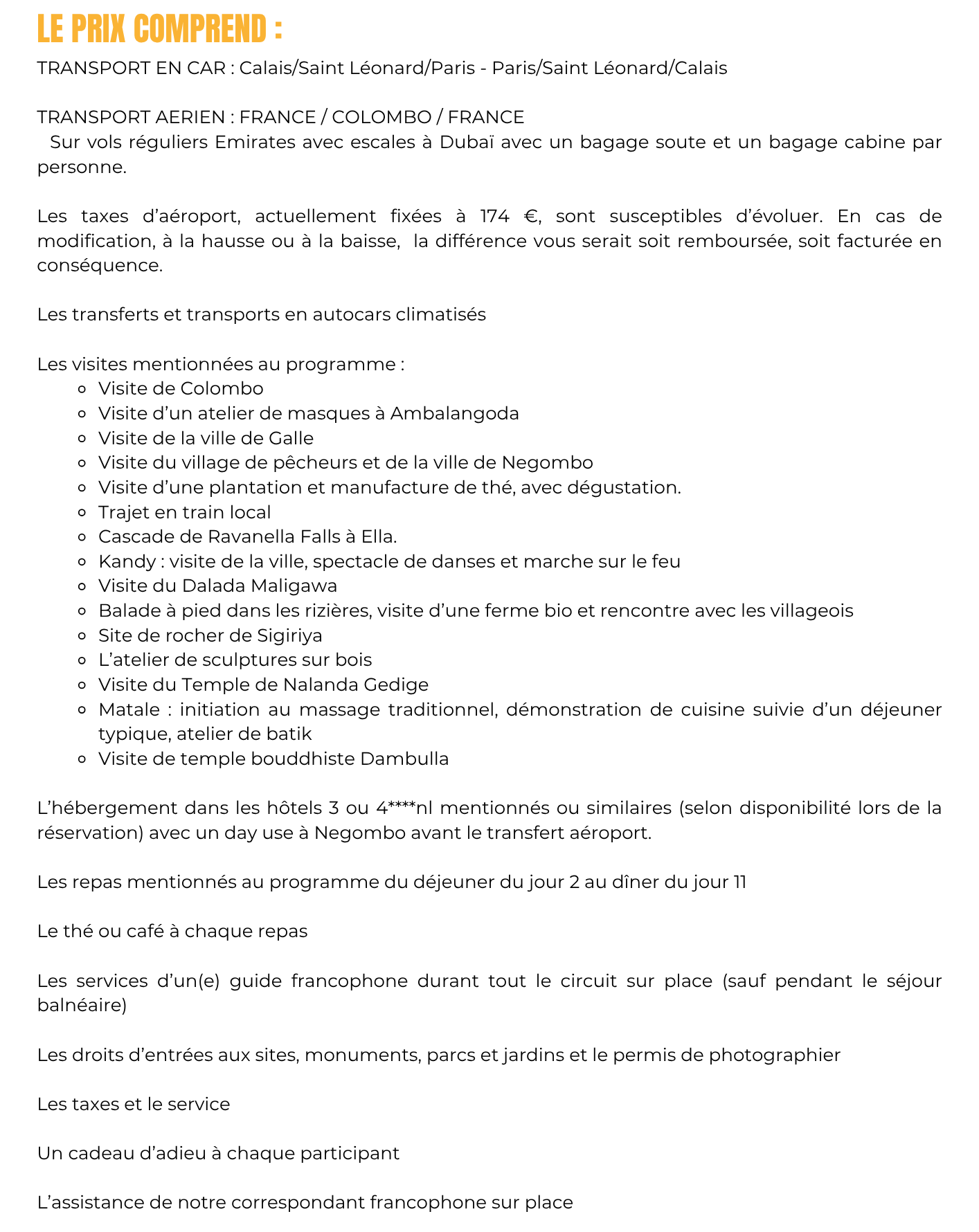 - Le transport jusqu'à l'aéroport- Le vol aller retour jusqu'au Sri Lanka