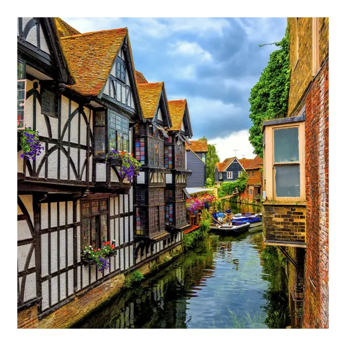 → les incontournables : Cathédrale de Canterbury, la vieille ville médiévale, ponts et berges de la Stour.