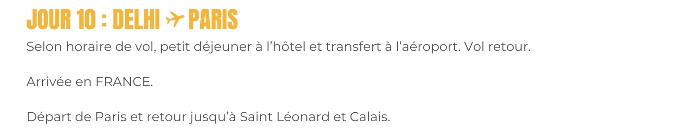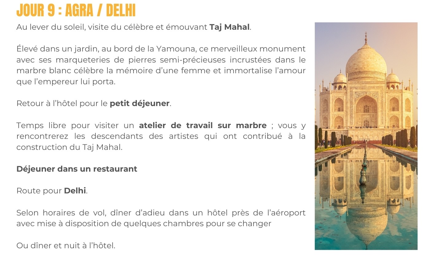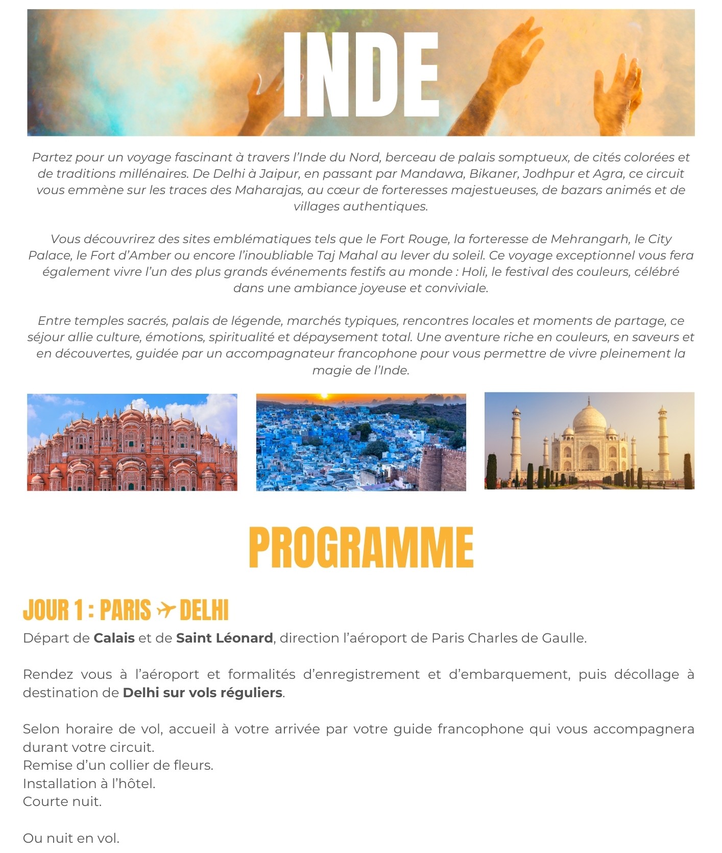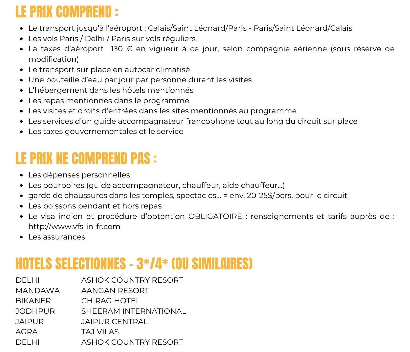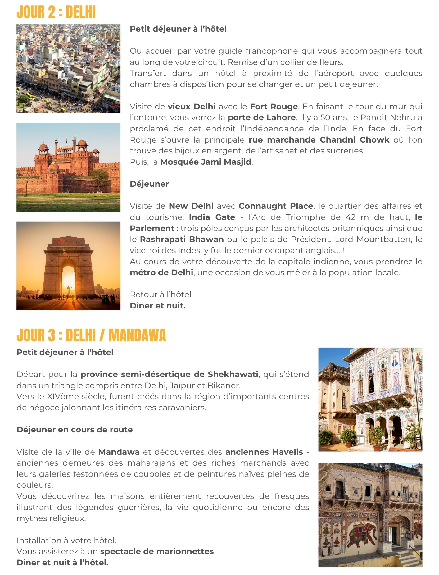 - Le transport jusqu'à l'aéroport- Le vol aller retour jusqu'à Delhi (Inde)